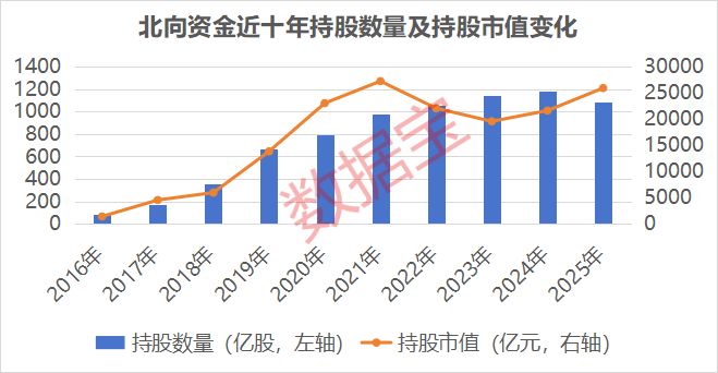 從2025年數據來看,北向資金自2025年一季度起持股市值連續4個季度攀升,不過持股數量有所下降,這與北向資金調倉、持股公司股價變動有一定關系。